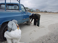 | Remains not taken to Vet school were left on the beach to be buried the next morning with a backhoe. |