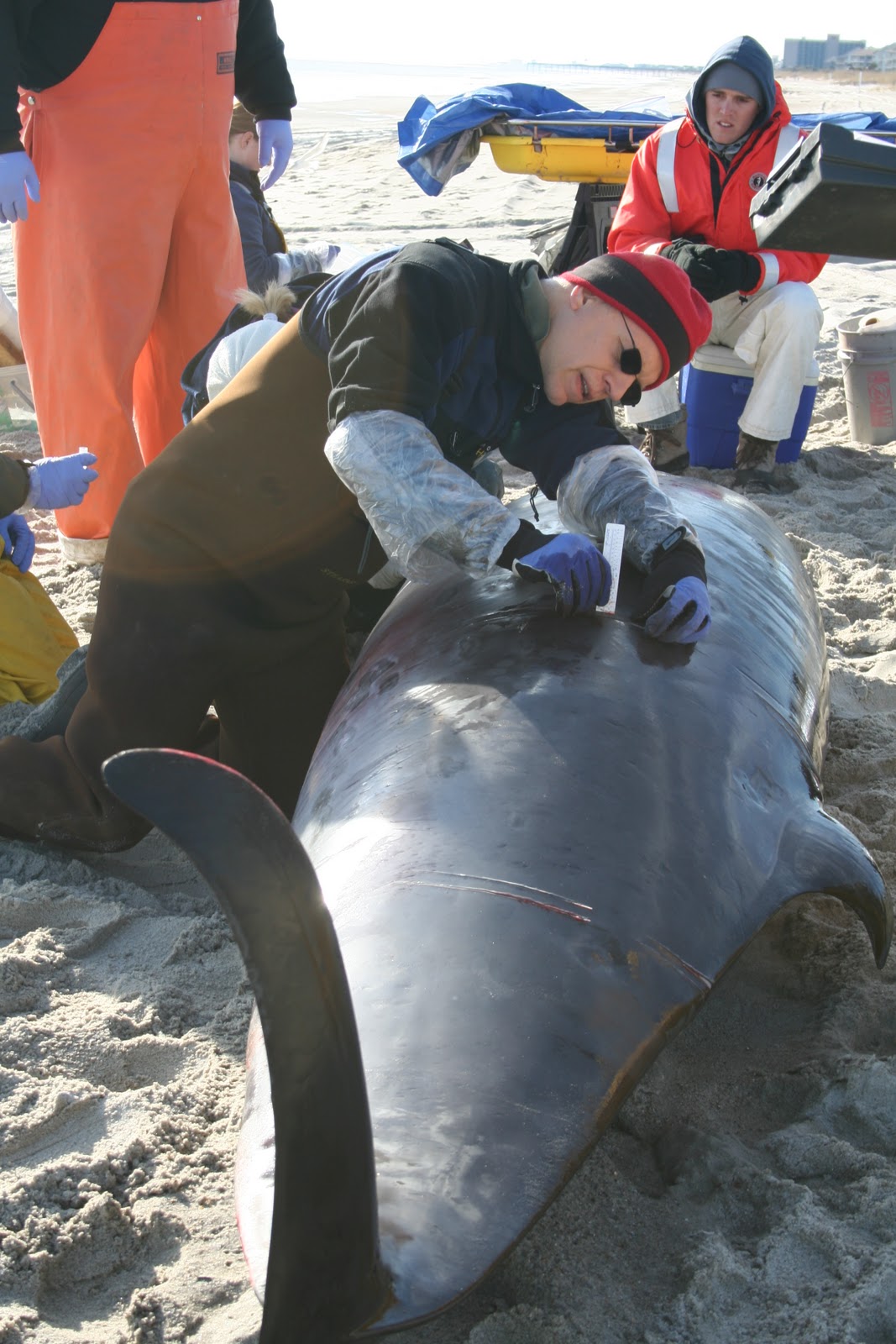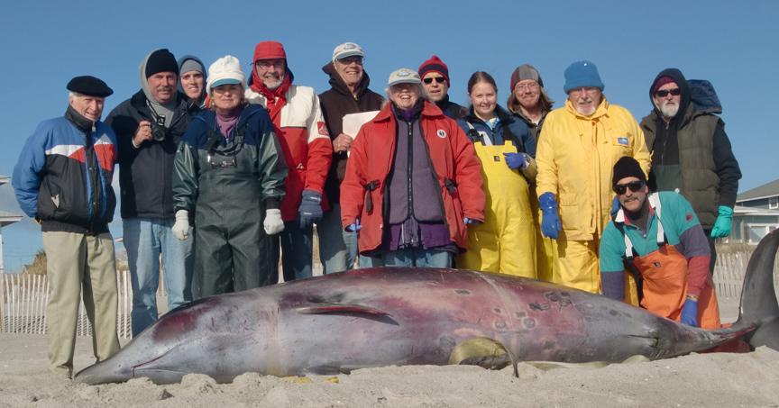 Vicky G. Thayer, Marine Mammal Stranding Coordinator for mid-coast North Carolina, was contacted about a marine mammal stranded at Atlantic Beach, NC on Thursday, February 10, 2011 . The whale was at water’s edge when found. It was a sub-adult female Gervais’ beaked whale, Mesoplodon europaeus, not a whale that commonly strands here.